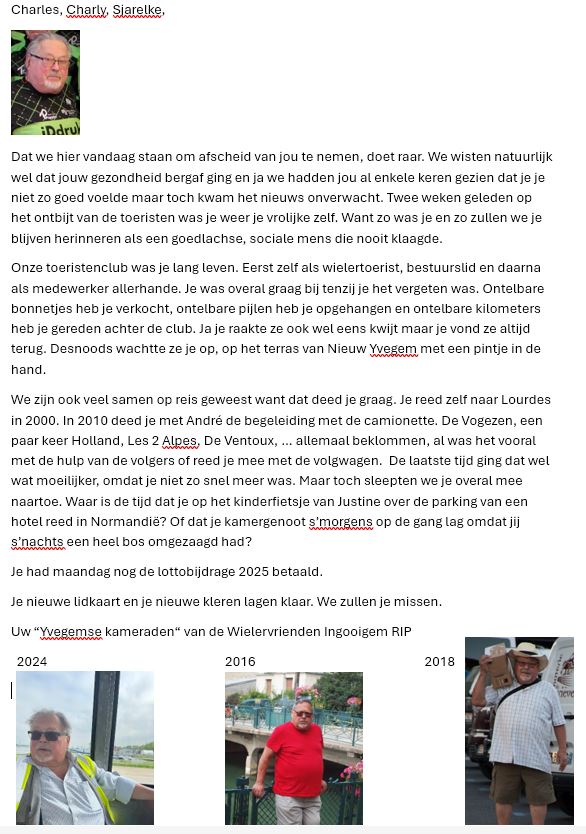 Droevig familynews: onze Ere-voorzitter Etienne Himpens (pa van Geert , de huidige voorzitter) en opa van Justine, is vorige zaterdag op 87jarige leeftijd overleden.